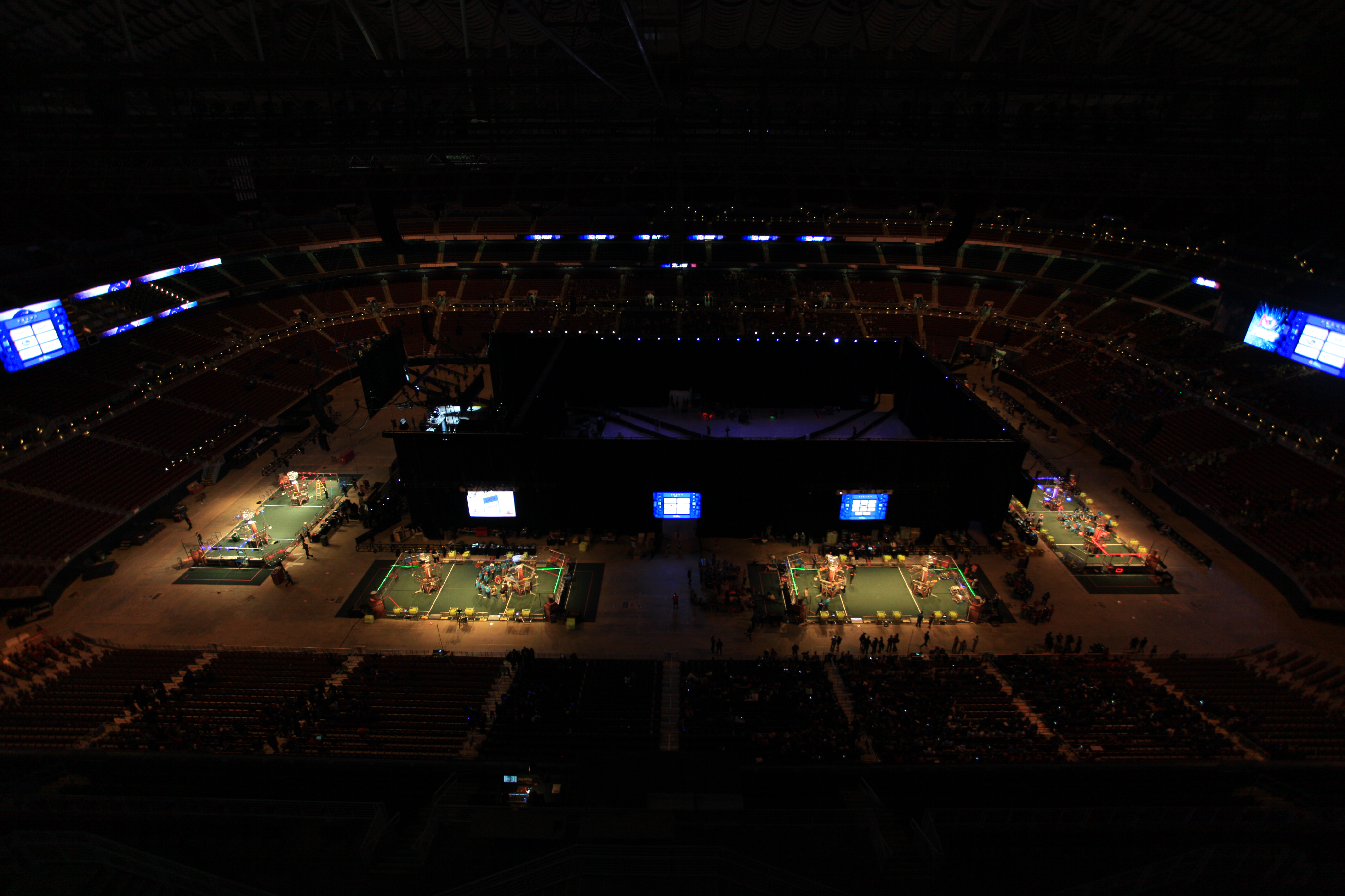 In Steamworks, teams collected gears from their loading station and delivered them to human players on the airship to engage rotors. Team also collected fuel from hoppers and on the field, and scored them in the high and low goals on the boiler. At the end of the match, robots climbed a rope to board the airship.